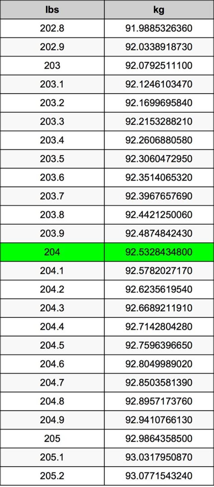 204 Libras en Kilogramos conversor de unidades