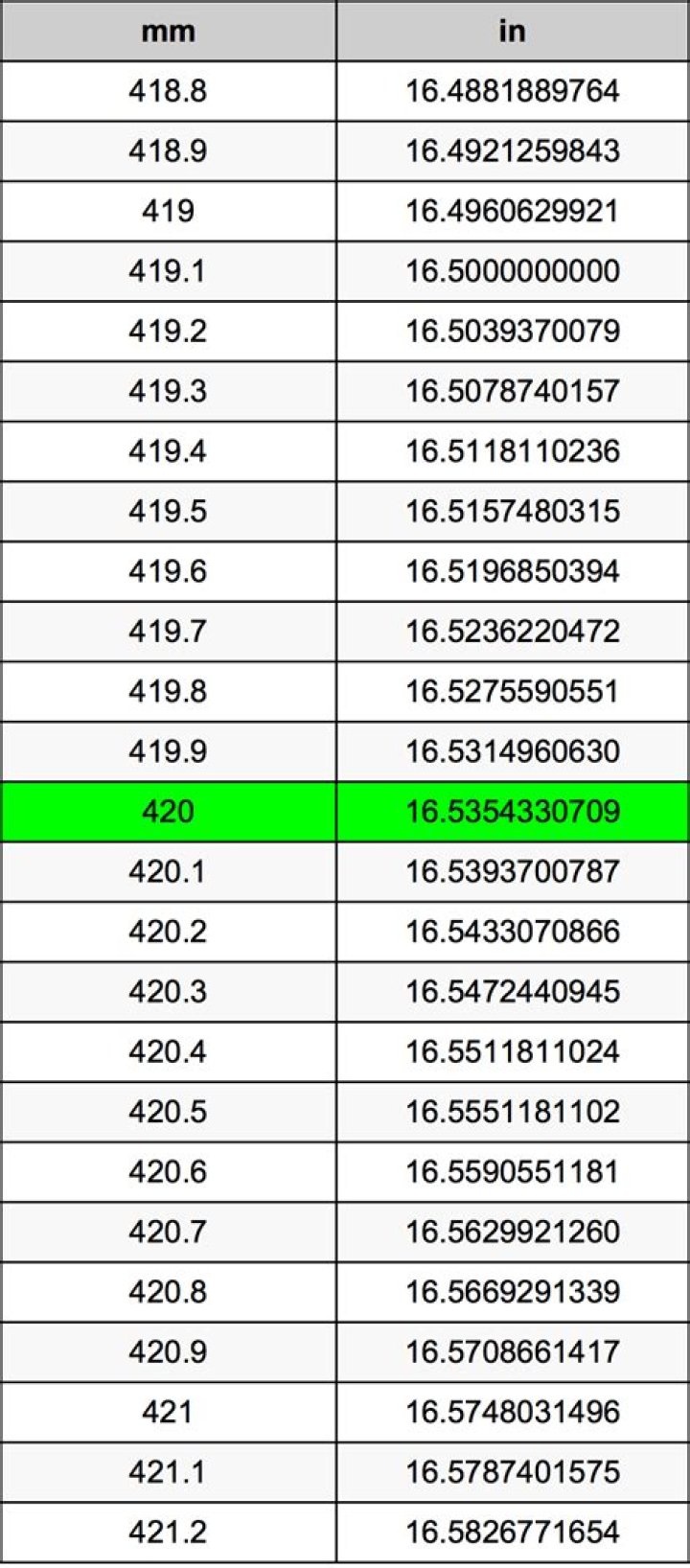 420 Millimetres To Inches Converter