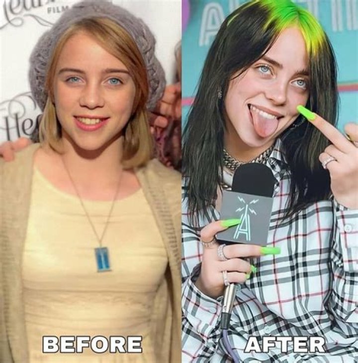 "Billie Eilish before and after" refers to the physical and stylistic transformation that singer Billie Eilish underwent over the years. Before gaining fame, Eilish was known for her baggy clothes and dark, edgy style. After becoming a global pop star, she adopted a more glamorous and feminine look, often wearing designer clothes and makeup.