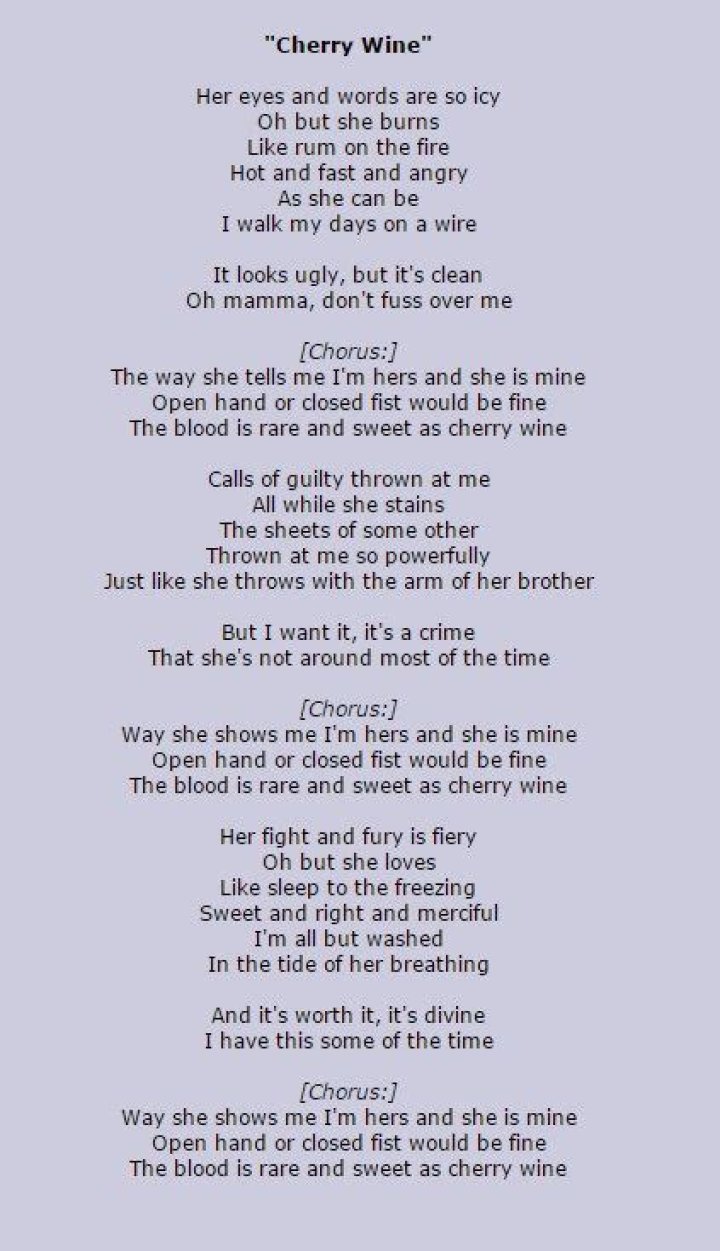 cherry wine lyrics | - InkBlog