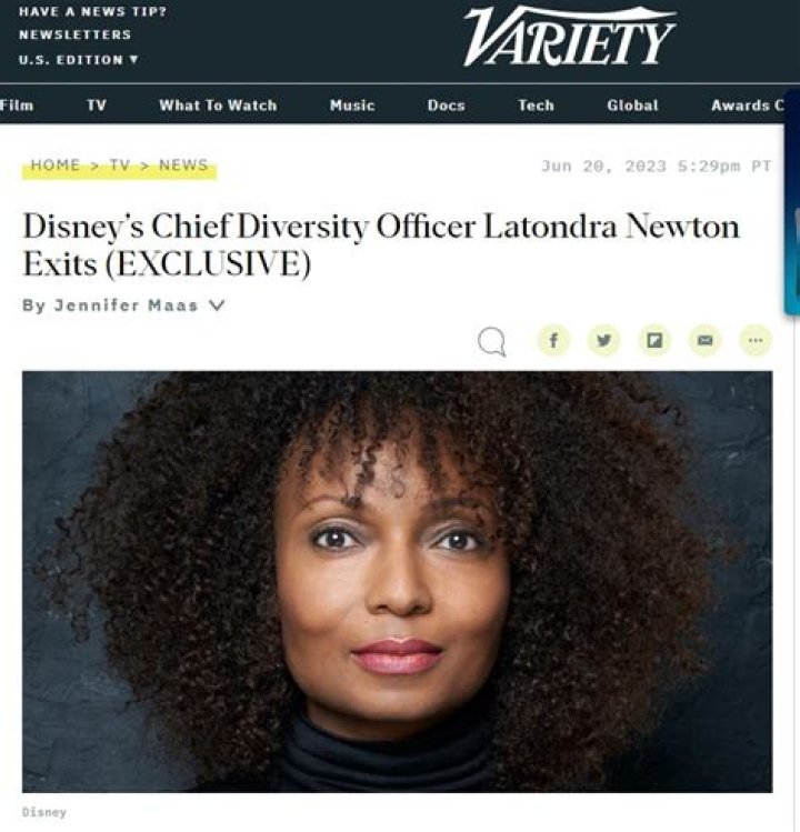 In her role as head of DEI operations at Disney, Newton was charged with overseeing the company’s “commitment to produce entertainment that reflects a global audience and sustains a welcoming and inclusive workplace for everyone.”