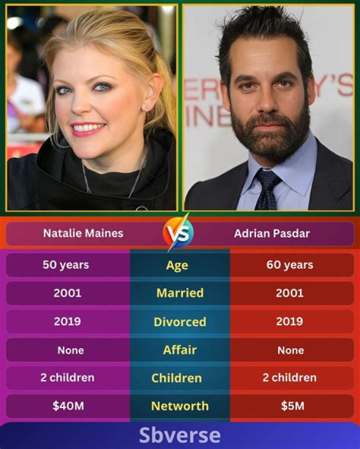 Question 5: Why did Natalie Maines and Adrian Pasdar divorce?The reason for Natalie Maines and Adrian Pasdar's divorce has not been publicly disclosed.