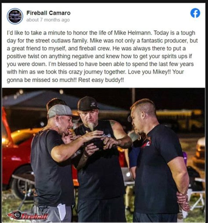 The cause of death has not yet been determined. ” I’d like to take a moment to remember Mike Helmann Fireball Camaro, as stated in a Facebook post. “Today is a difficult day for the family of street outlaws. Mike was not only a fantastic producer but also a great friend to me and the rest of the Fireball crew. He was always there to put a positive spin on any negative situation and knew how to lift your spirits if you were down.