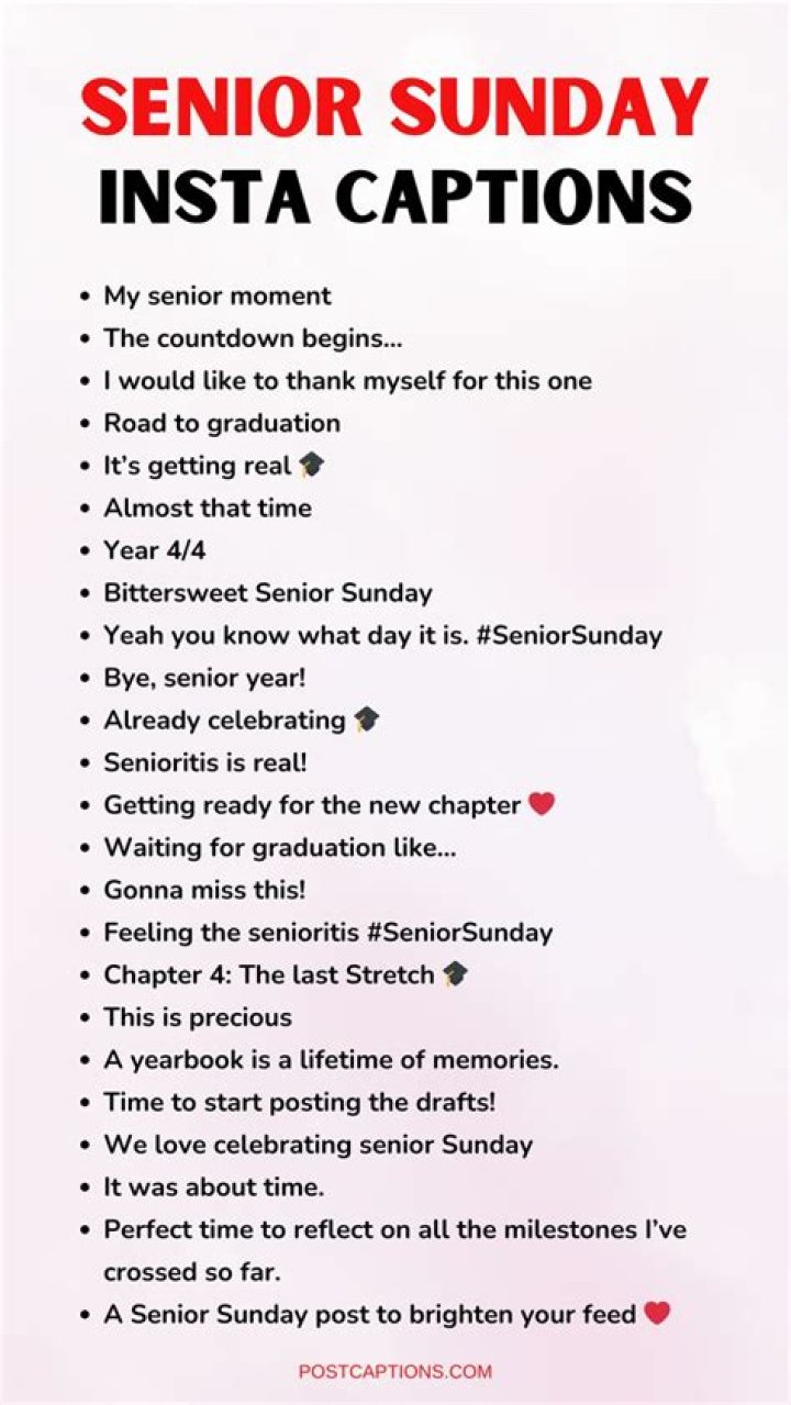 Senior Sunday captions for Instagram are a way to celebrate and honor graduating seniors. They can be funny, heartwarming, or inspirational. They often include words of encouragement and support for the graduates as they embark on a new chapter in their lives.