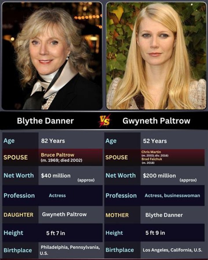 - Personal life: Married to Bruce Paltrow (1969-2002), two children (Gwyneth Paltrow and Jake Paltrow)