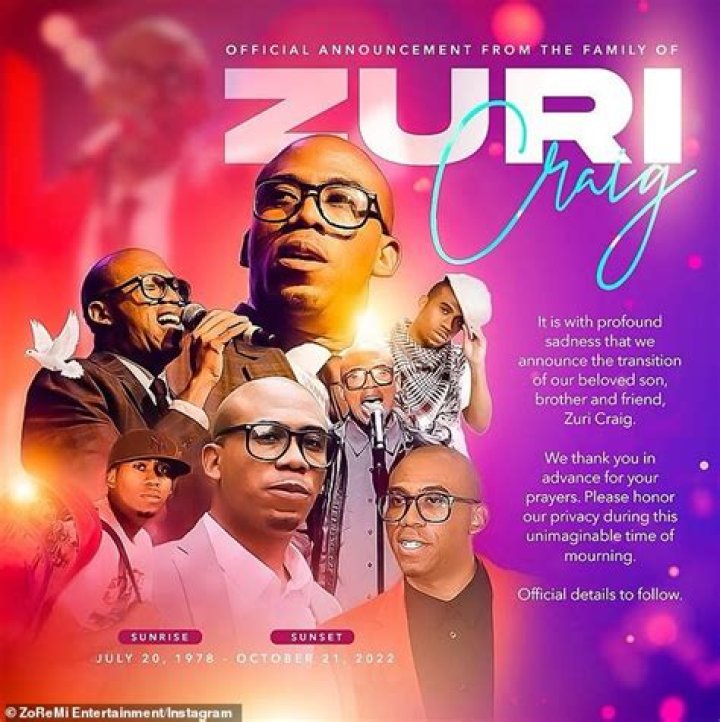 Zuri Craig’s death was confirmed by his family, they posted a memorial on Zuri’s official ZoReMi Entertainment page on Sunday, 23 October 2022 announcing his passing by writing, that he passed away on 21 October 2022. However, there is no cause of death was revealed.